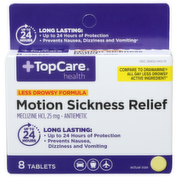 Topcare Health Meclizine Hcl, Antiemetic Motion Sickness Relief - 8 Count, $2.99