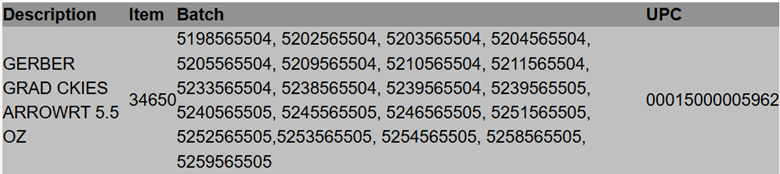 Gerber Products Company is initiating a voluntary recall of limited batches of Gerber® Arrowroot Biscuits out of an abundance of caution due to the potential presence of soft plastic and/or paper pieces that should not be consumed. Product can be returned for a full refund.